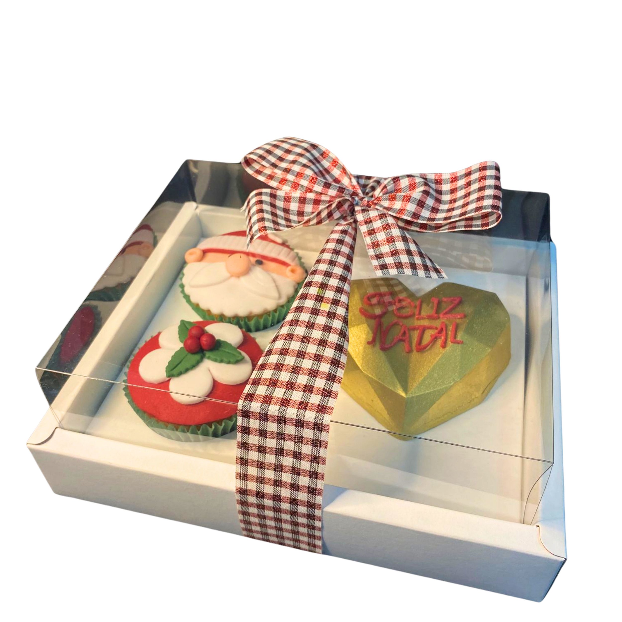 Caixa linha presente para 1 coração lapidado e 2 cupcakes - Kit com 10 unidades