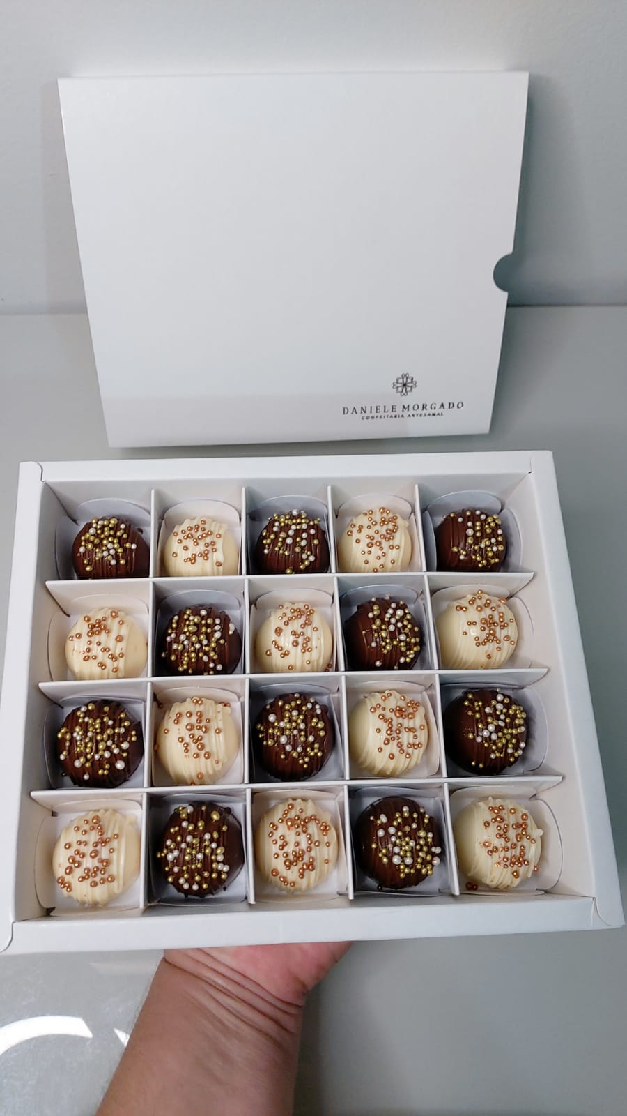 Base da caixa com borda moldura, 4cm de altura, acomoda doces, bombons e trufas.