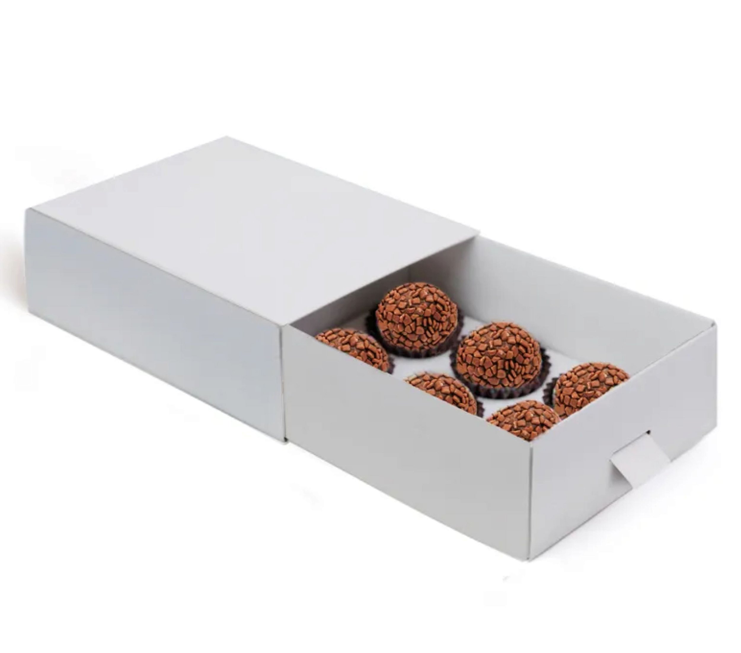Caixa em papel cartão, com luva e berço para 9 doces - cor BRANCA